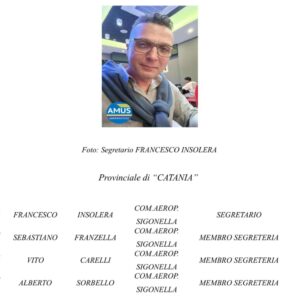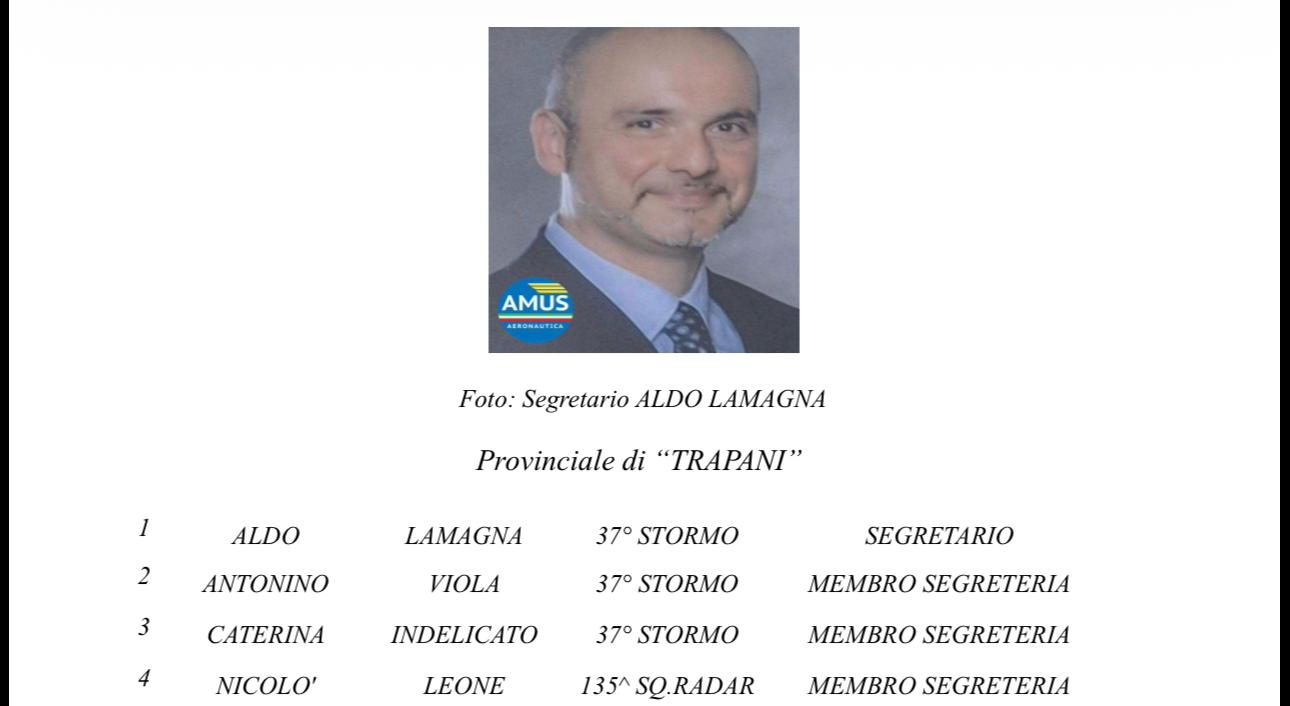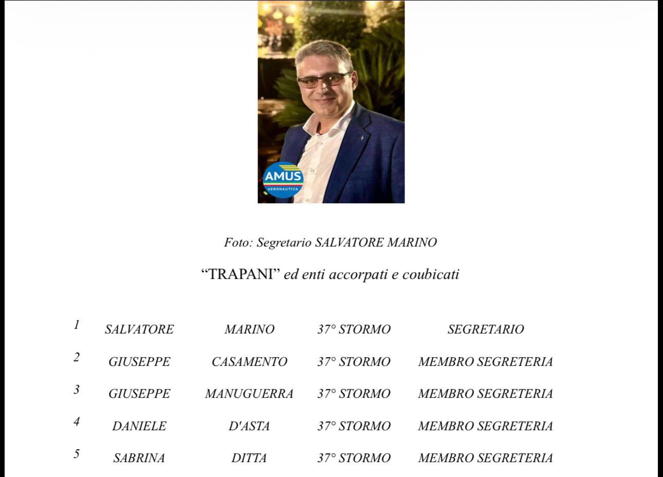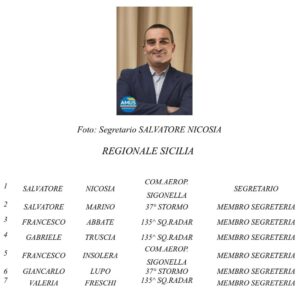 ELENCO NOMINATIVO DEGLI ELETTI NELLE VARIE SEGRETERIE DI BASE, PROVINCIALI E REGIONALI DI AMUS – AERONAUTICA PER LA REGIONE SICILIA: