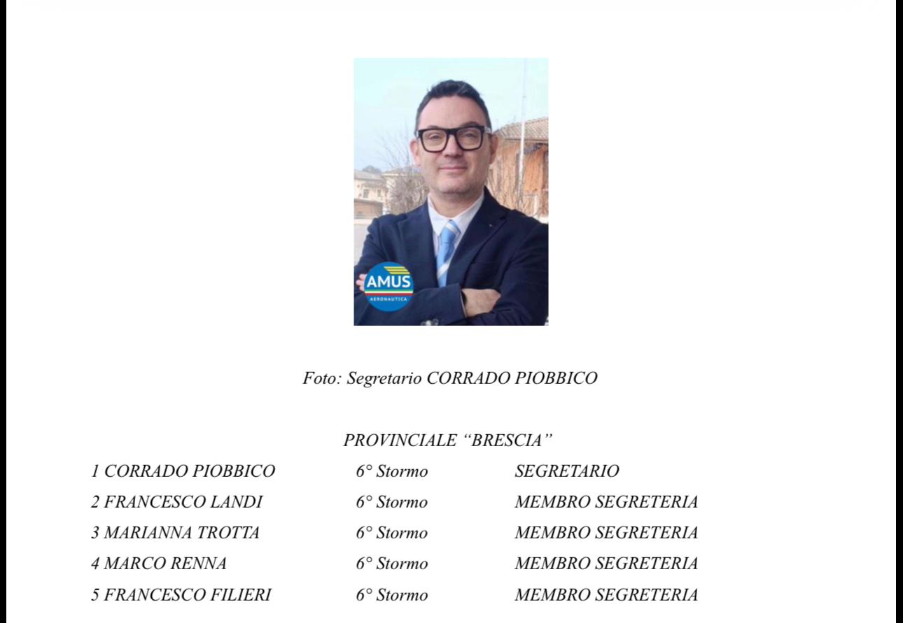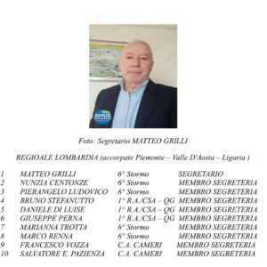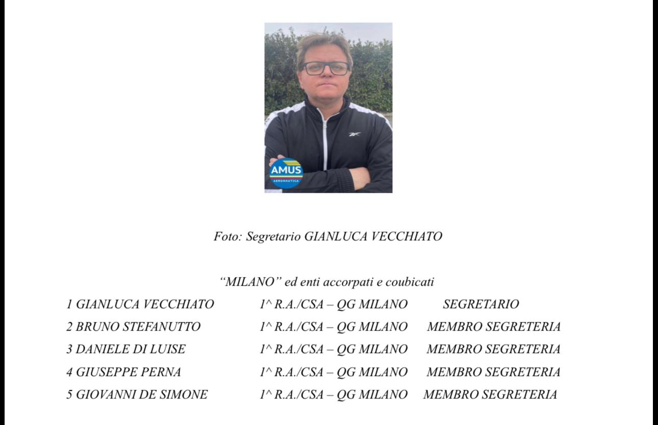 ELENCO NOMINATIVO DEGLI ELETTI NELLE VARIE SEGRETERIE DI BASE, PROVINCIALI E REGIONALI DI AMUS – AERONAUTICA PER LA REGIONE LOMBARDIA (accorpate Piemonte – Valle D’Aosta – Liguria):