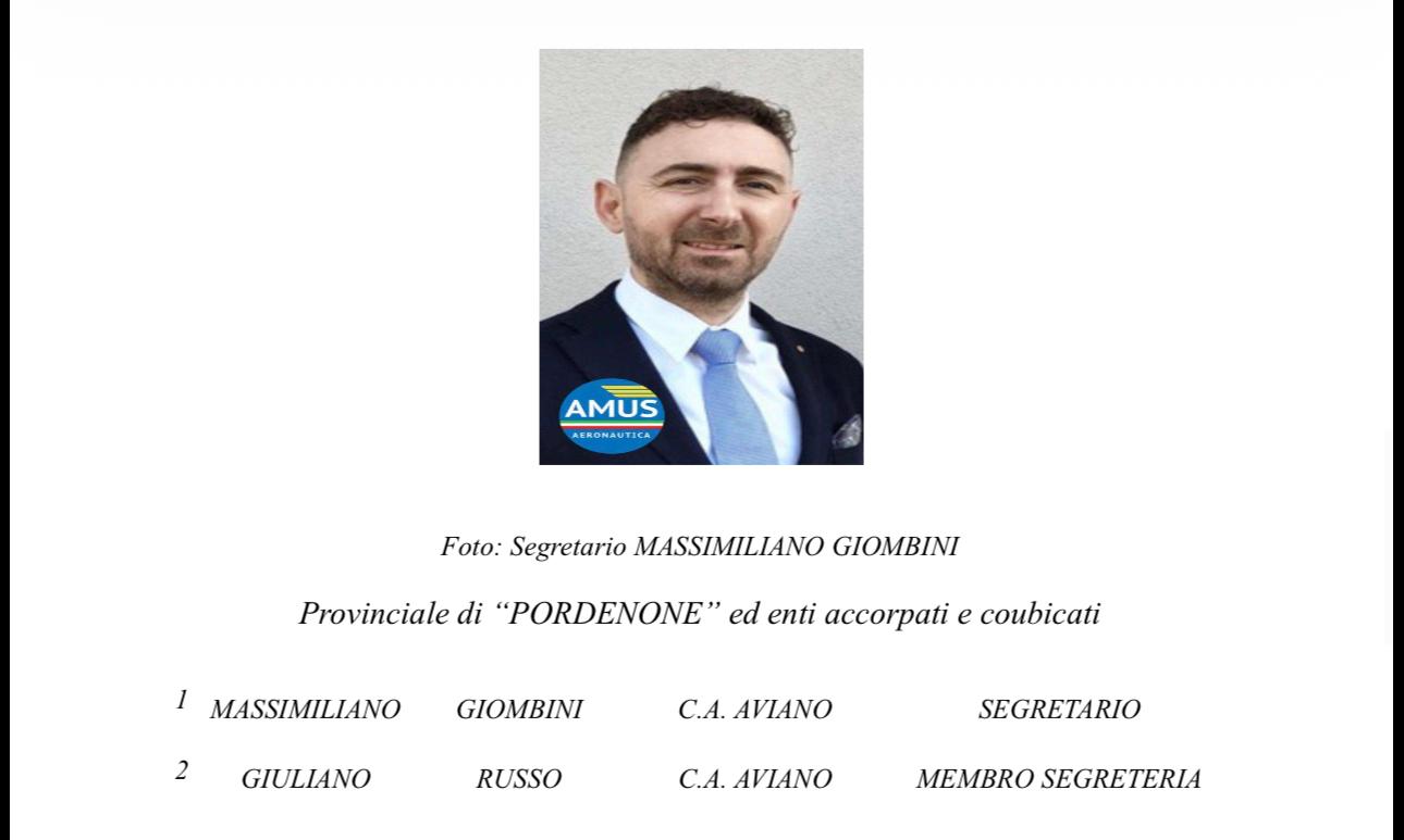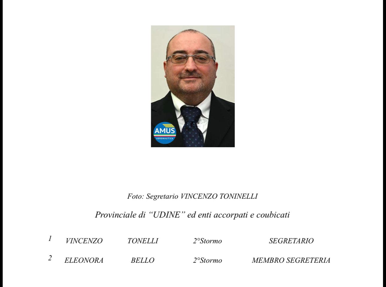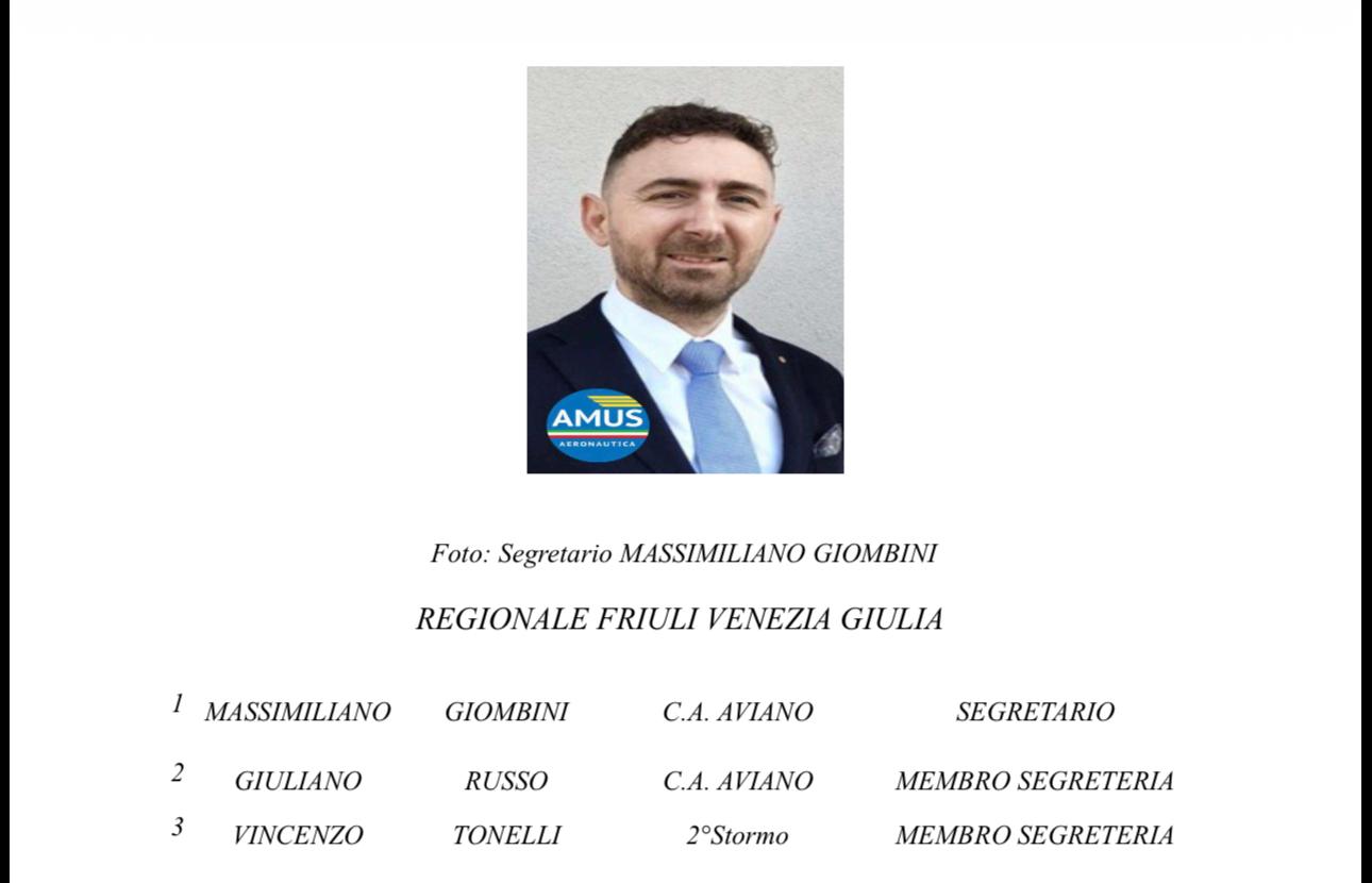 ELENCO NOMINATIVO DEGLI ELETTI NELLE VARIE SEGRETERIE DI BASE, PROVINCIALI E REGIONALI DI AMUS – AERONAUTICA PER LA REGIONE FRIULI VENEZIA GIULIA: