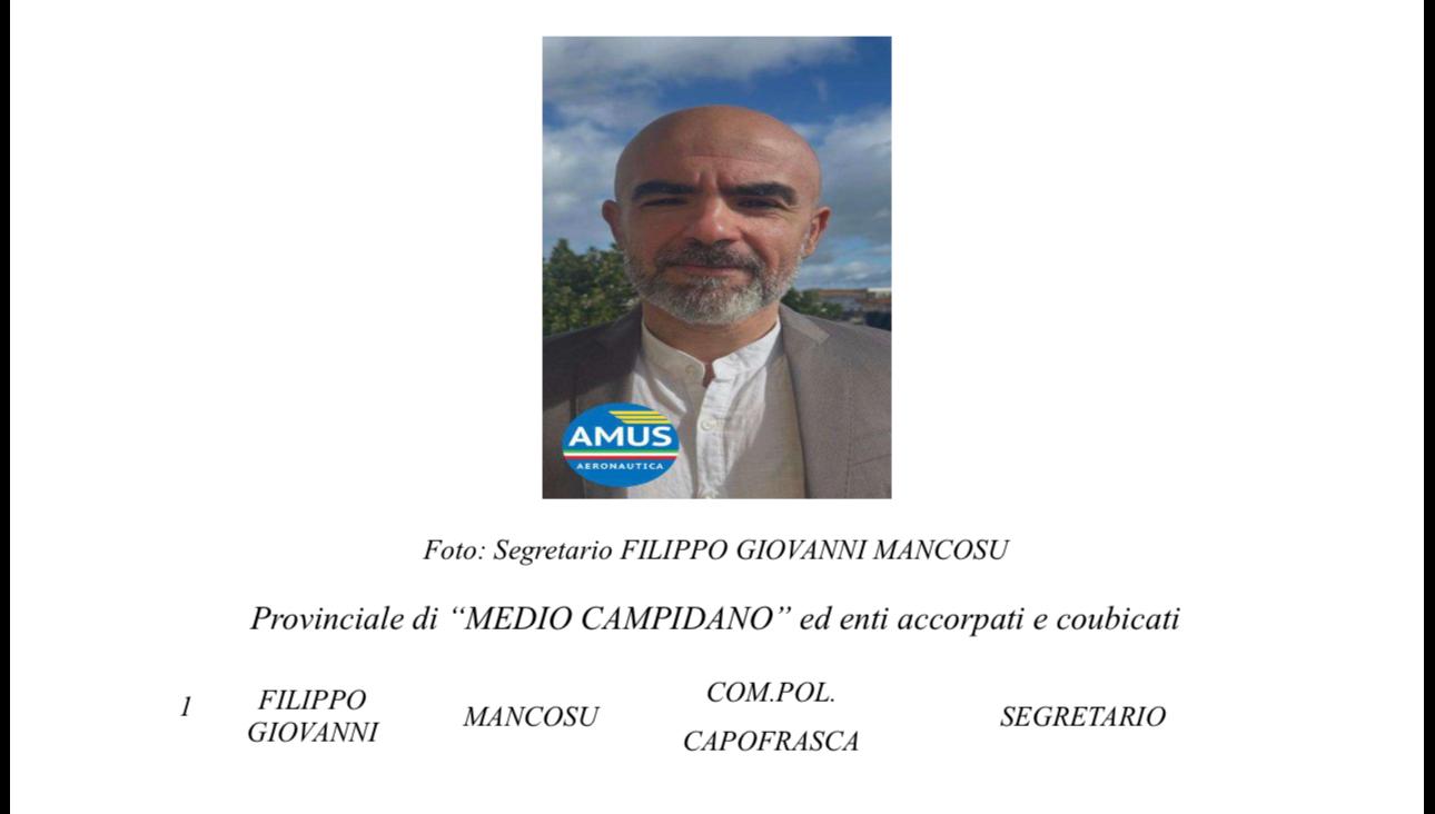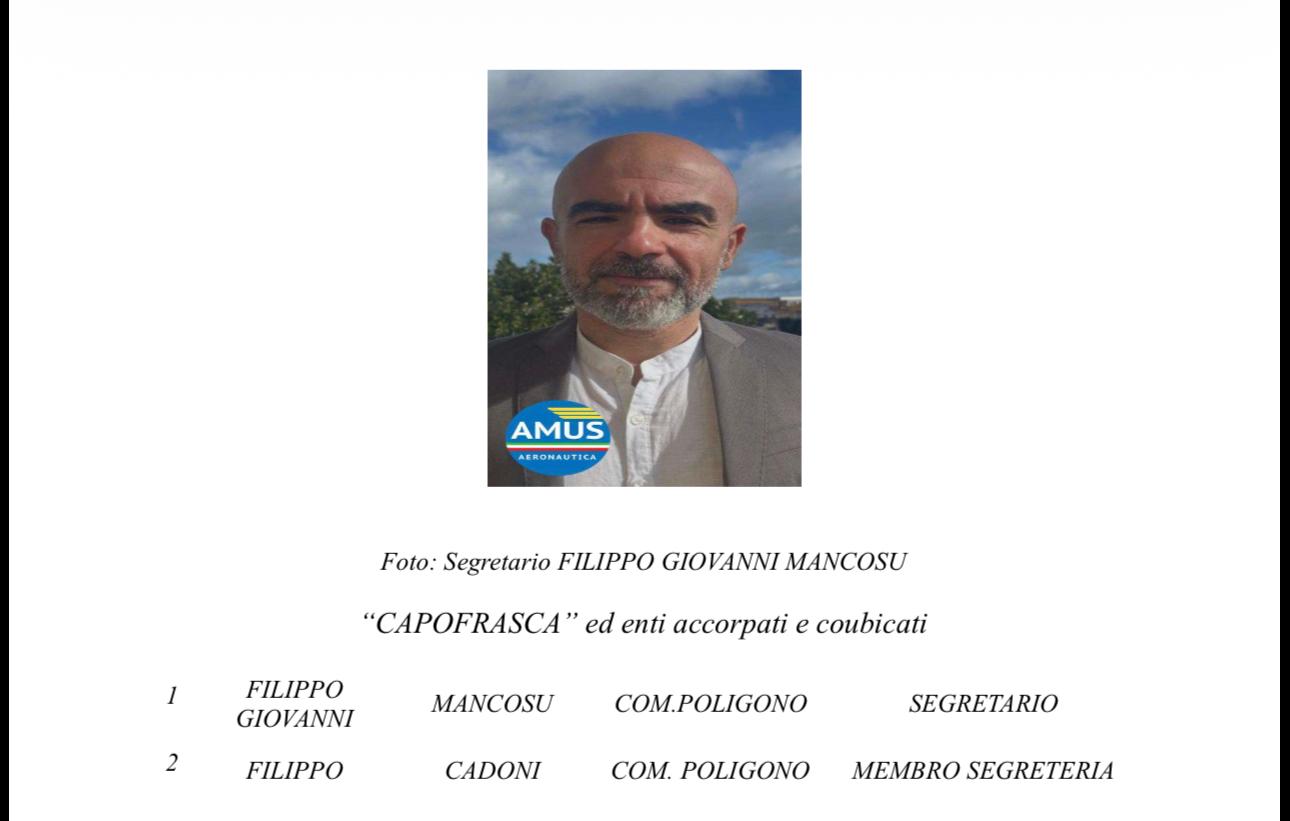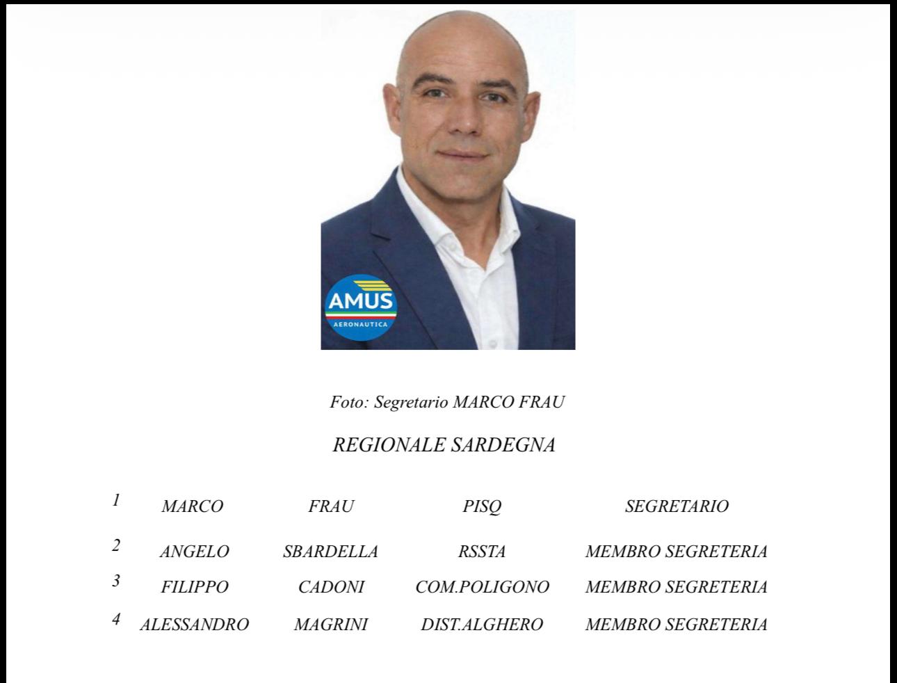 ELENCO NOMINATIVO DEGLI ELETTI NELLE VARIE SEGRETERIE DI BASE, PROVINCIALI E REGIONALI DI AMUS – AERONAUTICA PER LA REGIONE SARDEGNA: