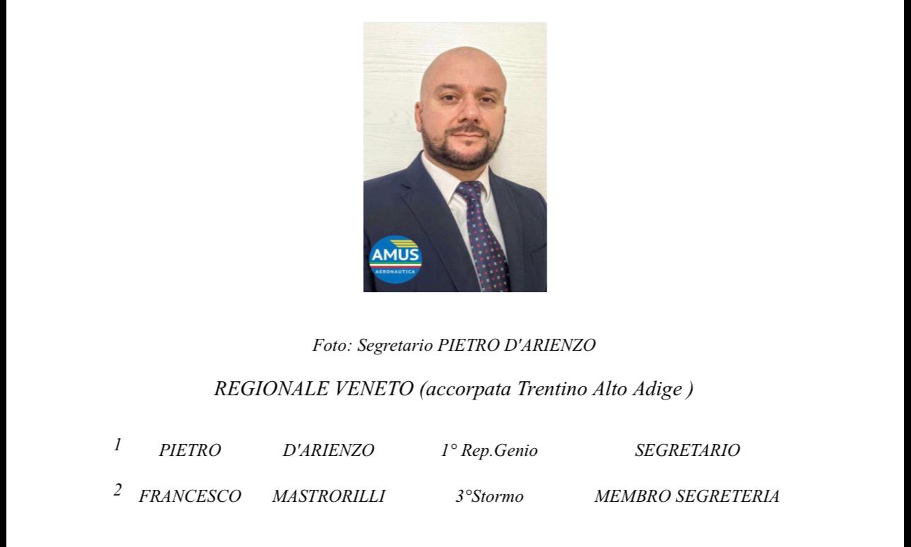 ELENCO NOMINATIVO DEGLI ELETTI NELLE VARIE SEGRETERIE DI BASE, PROVINCIALI E REGIONALI DI AMUS – AERONAUTICA PER LA REGIONE VENETO (accorpata Trentino Alto Adige):